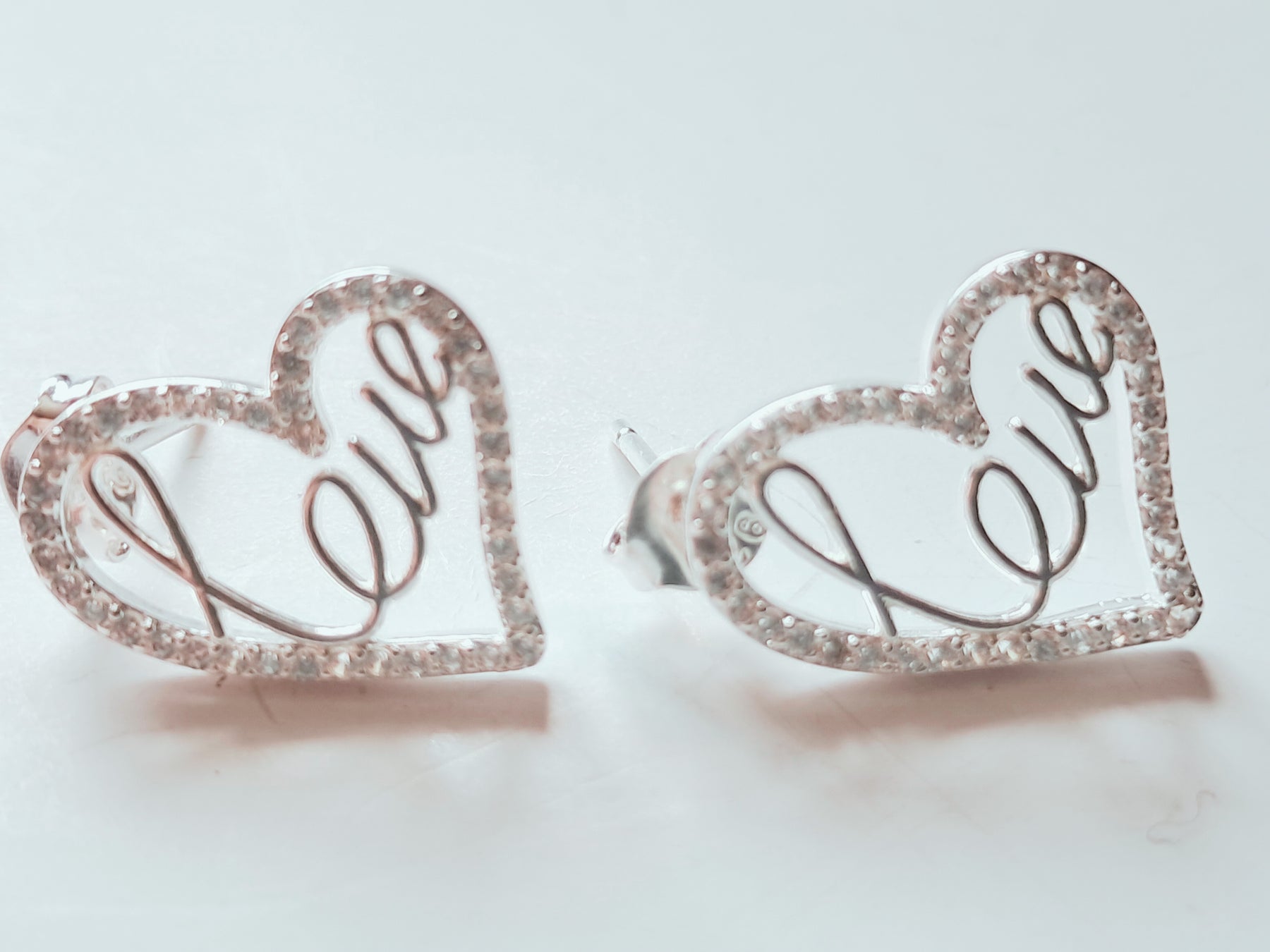 Delicados aros en forma de corazón, elaborados en Plata 925 con la palabra "Love" calada en el centro. Su borde está realzado con circones brillantes que aportan un toque elegante y romántico. Peso: 1.8 g (par). Cierre de presión, cómodos y ligeros, ideales para un look moderno y sofisticado.
