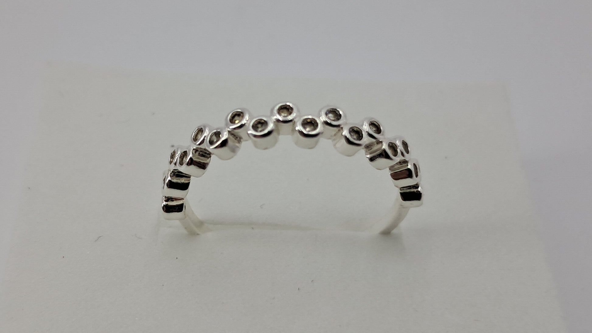 Diseñado para destacar: Cada circonita negra está individualmente engastada en bisel, creando un efecto visual continuo que captura miradas. La media alianza permite combinarlo fácilmente con otros anillos o lucirlo solo como pieza statement.