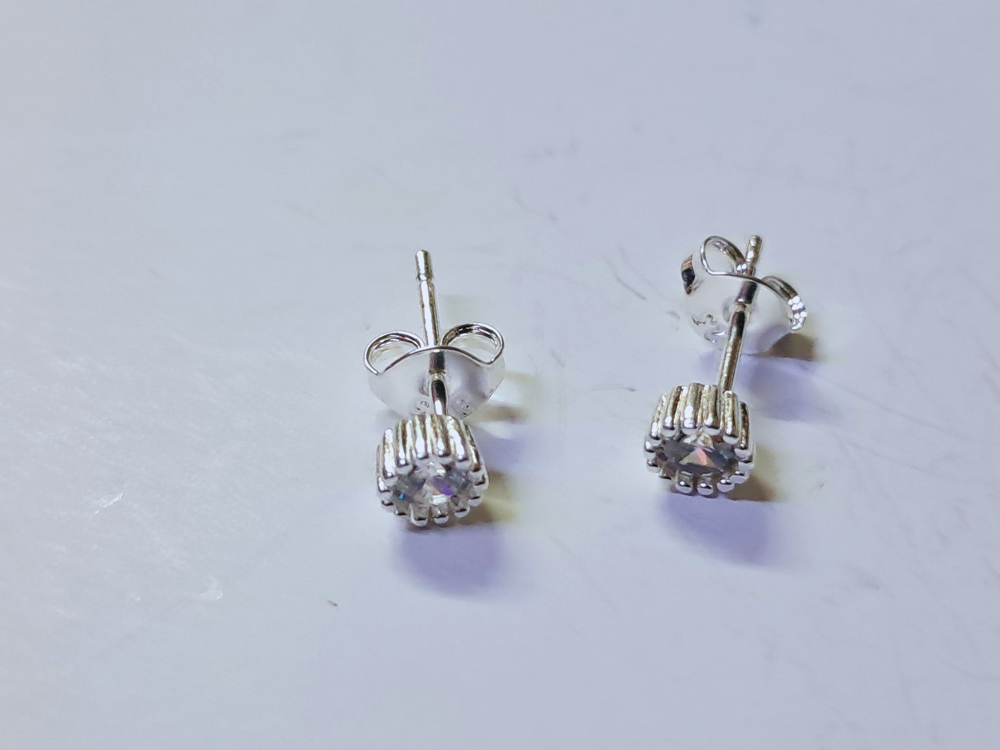 Elegantes aros tipo botón en plata 925 con circonia central engarzada en un delicado diseño estriado. Su brillo sutil los convierte en un accesorio perfecto para uso diario o para complementar un look clásico y sofisticado.