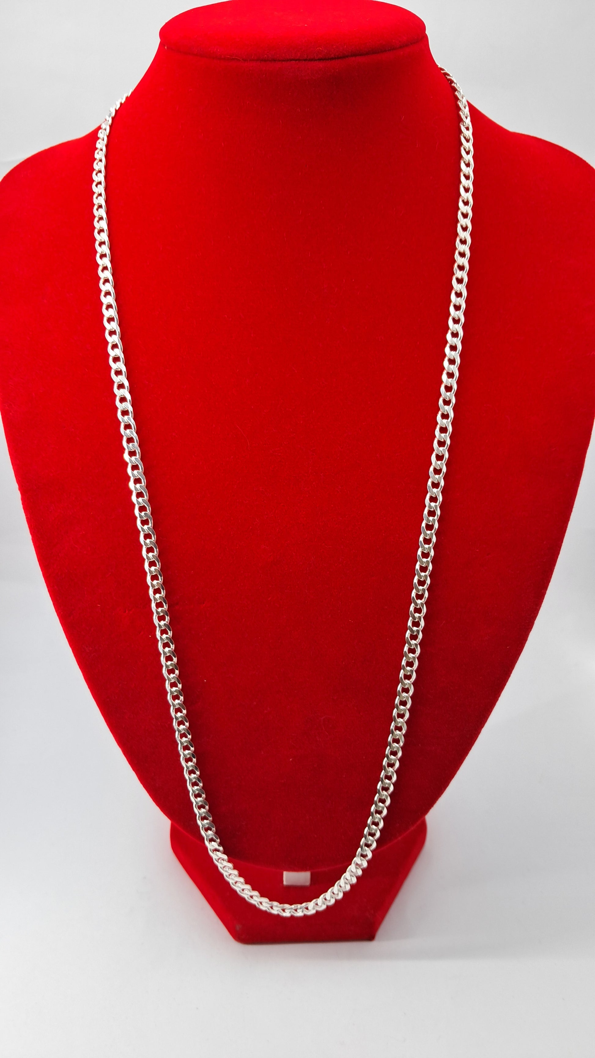 Fabricada en Plata 925, ofrece un acabado premium, resistencia superior y un brillo que no se consigue con materiales inferiores. Su largo extendido de 72 cm y peso de 24.3 g entregan una caída imponente, ideal para un look más protagonista, urbano y masculino.