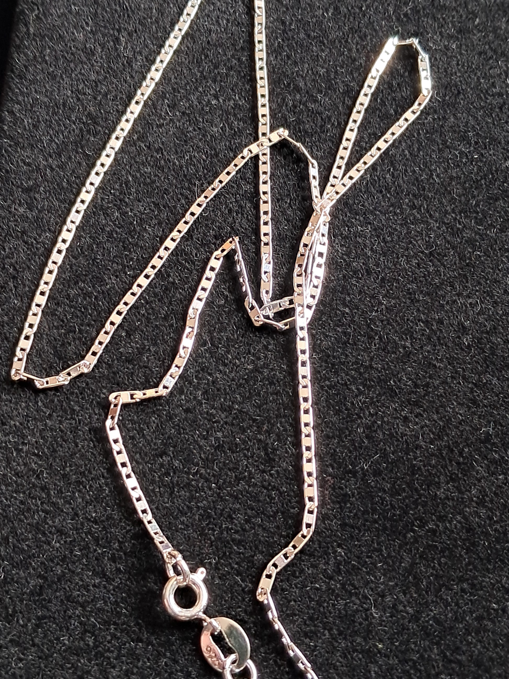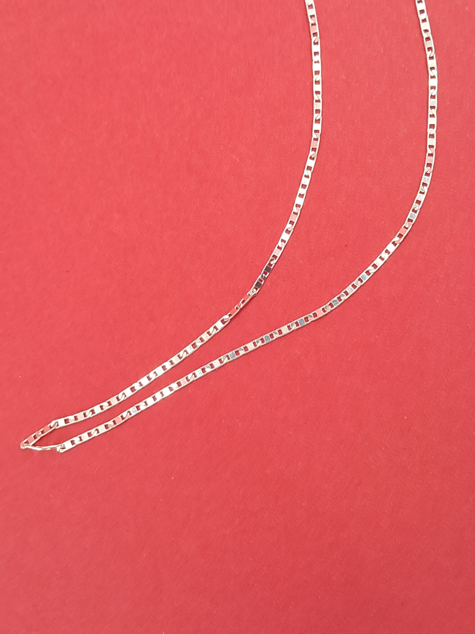 Cadena masculina de plata 925 con diseño de eslabones cuadrados pulidos. Su estructura firme y discreta aporta un toque moderno sin perder la elegancia clásica. Ideal para hombres que valoran la calidad y la sobriedad en sus accesorios.