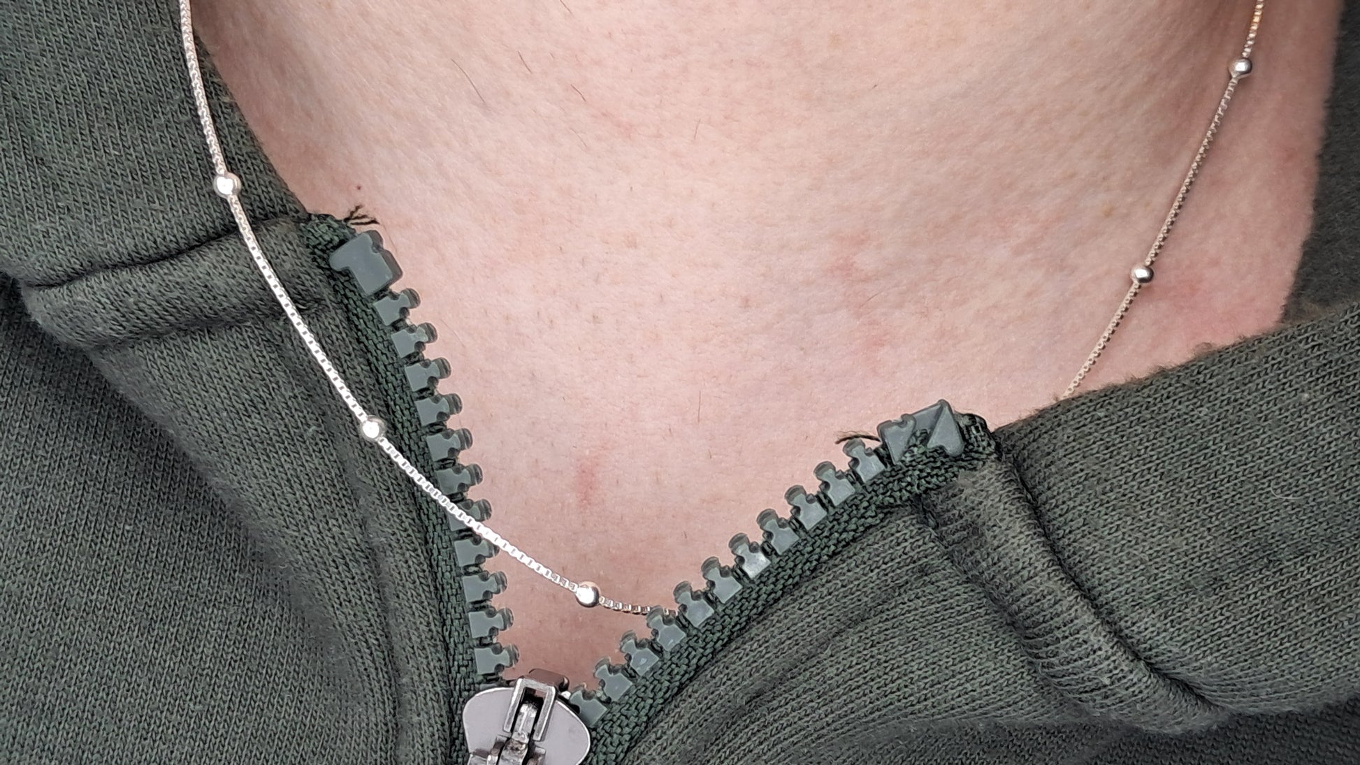 La Stellar Beads es una cadena delicada y moderna que destaca por sus pequeñas esferas distribuidas a lo largo del diseño, dando un brillo suave y elegante que se aprecia incluso a distancia. Perfecta para un estilo minimalista, femenina y muy fácil de combinar con cualquier outfit o accesorio.
