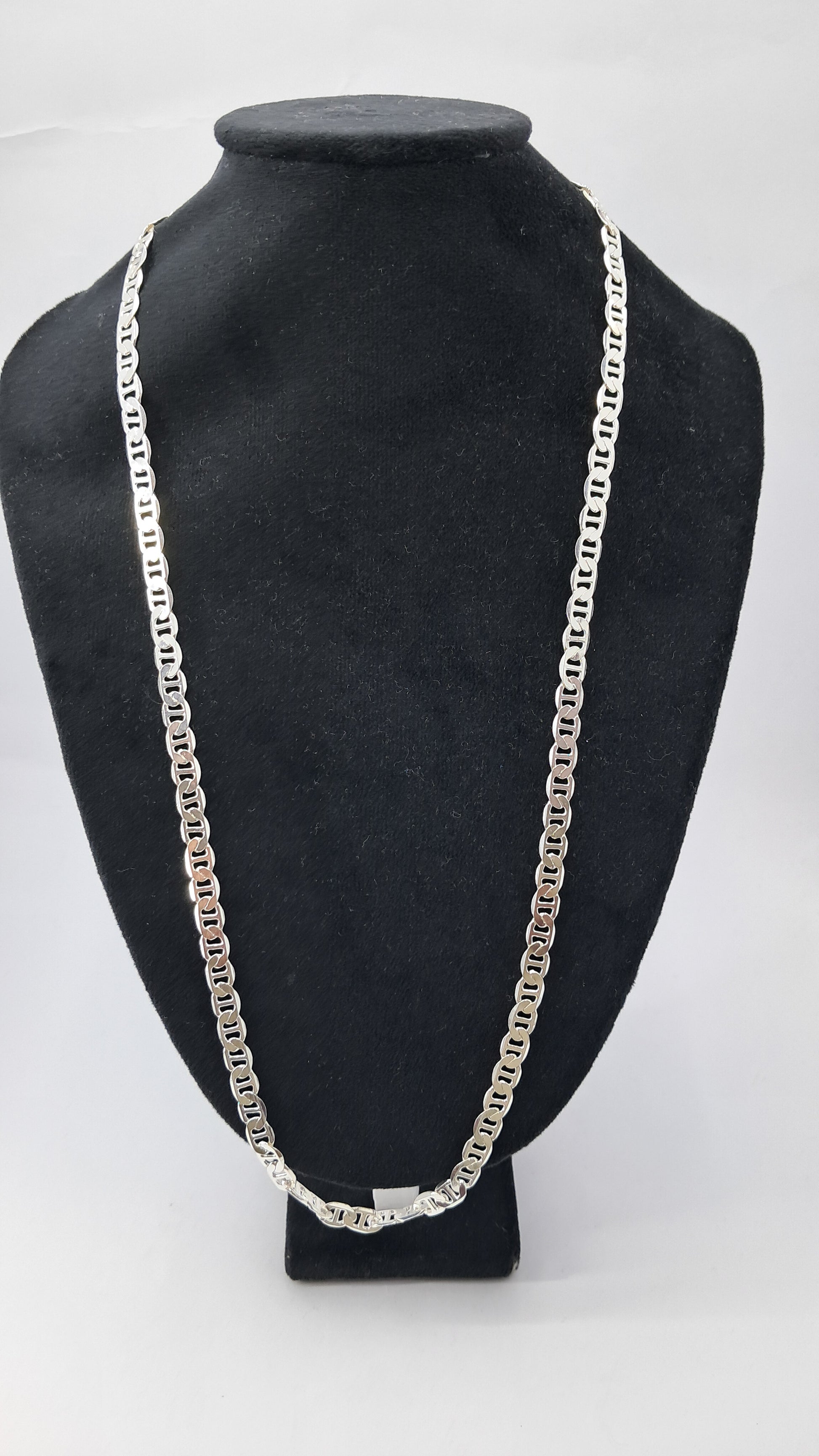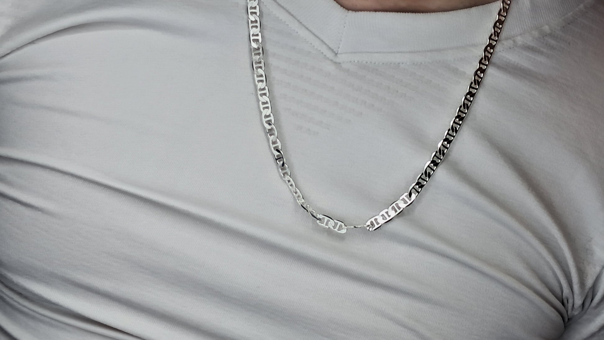 Fabricada en Plata 925, ofrece un acabado fino, durabilidad superior y un brillo que no se compara con ningún recubrimiento o acero. Su largo de 62 cm y sus 21.9 g le dan una caída impecable al centro del pecho, sólida pero cómoda, perfecta para uso diario.