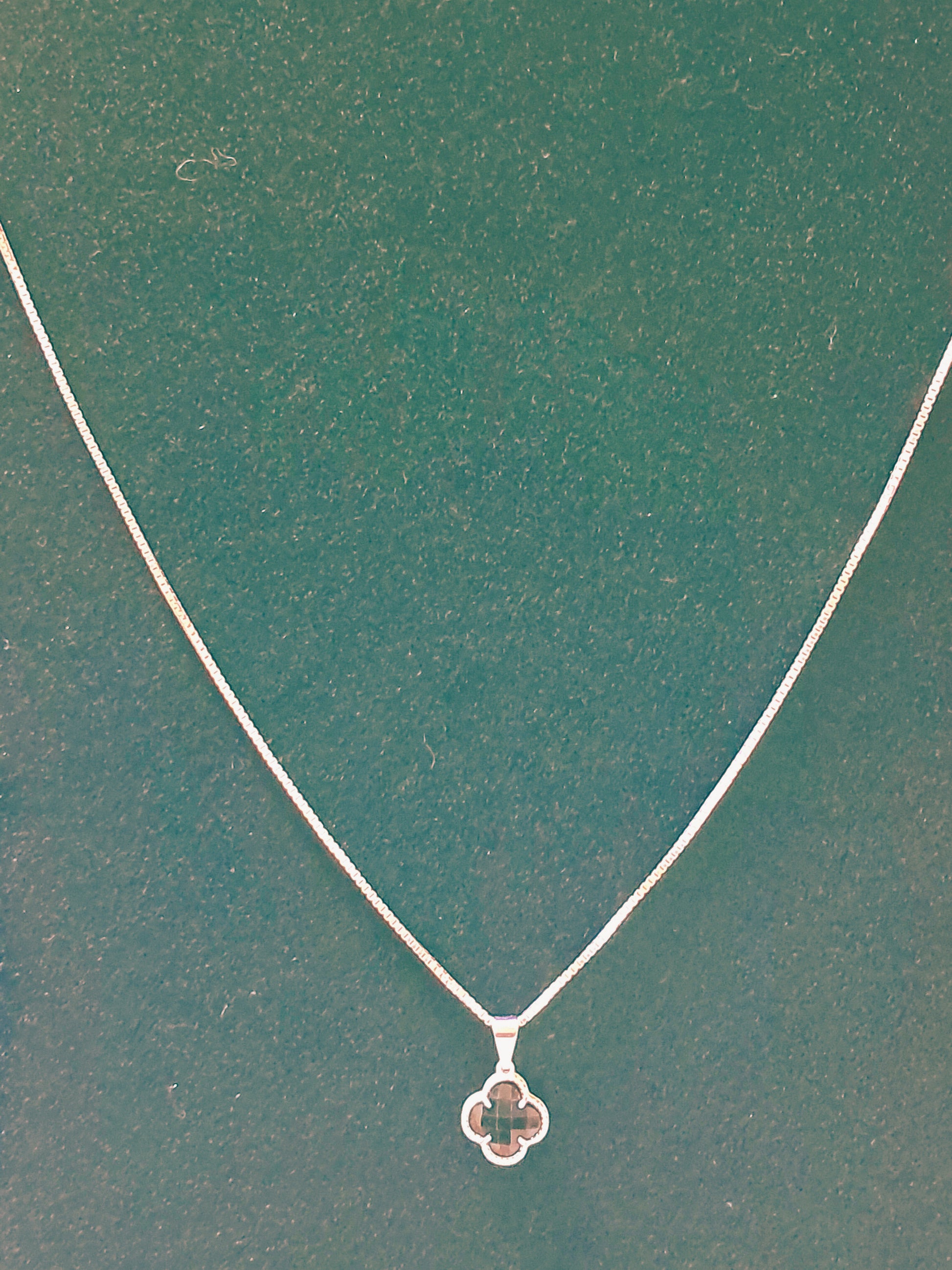 Elegante collar de plata 925 con dije en forma de trébol de cuatro hojas, engastado con piedra negra facetada que aporta brillo y sofisticación. Su diseño delicado y moderno lo convierte en un accesorio versátil, ideal para realzar cualquier atuendo, ya sea casual o de ocasión especial.