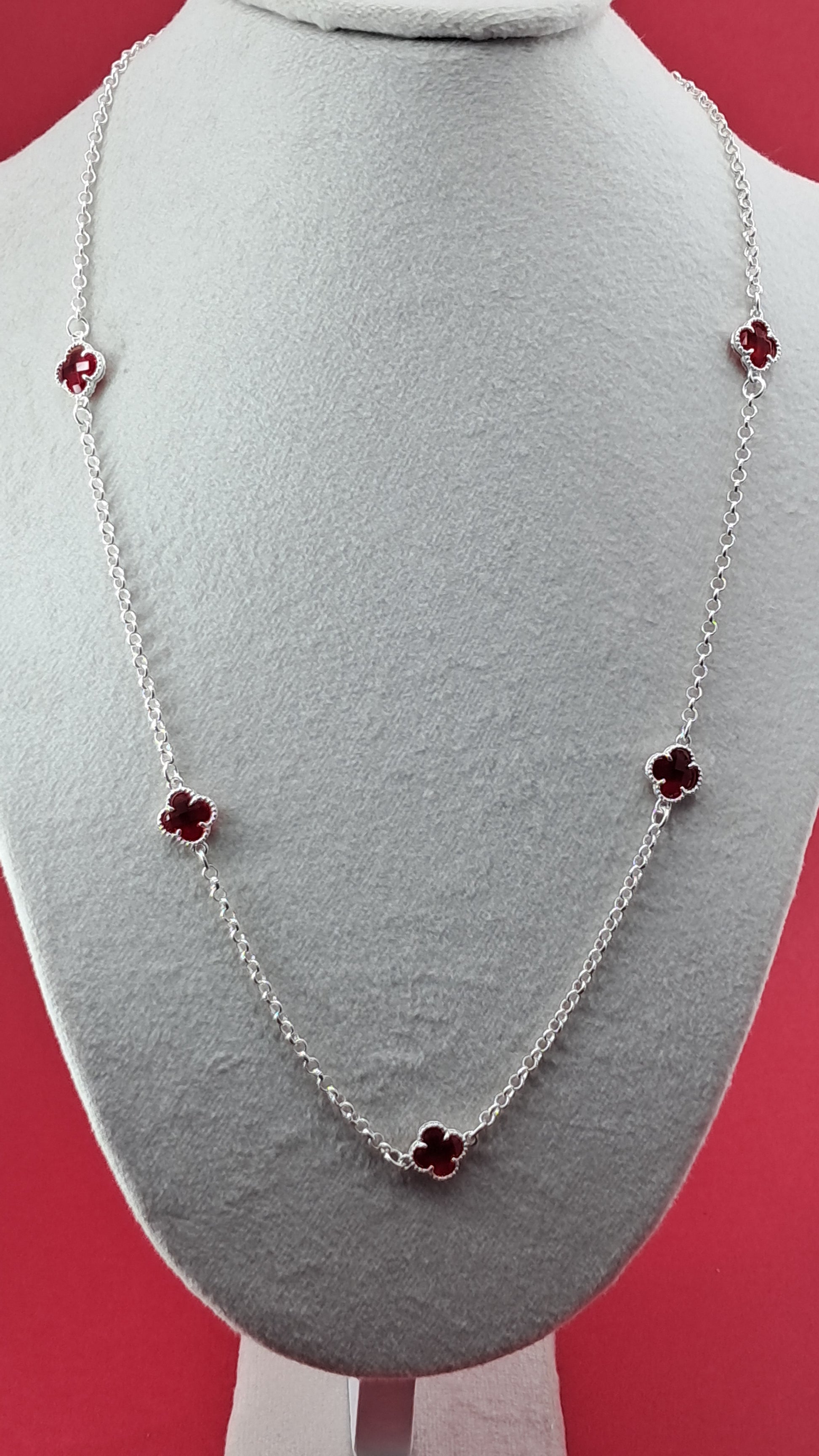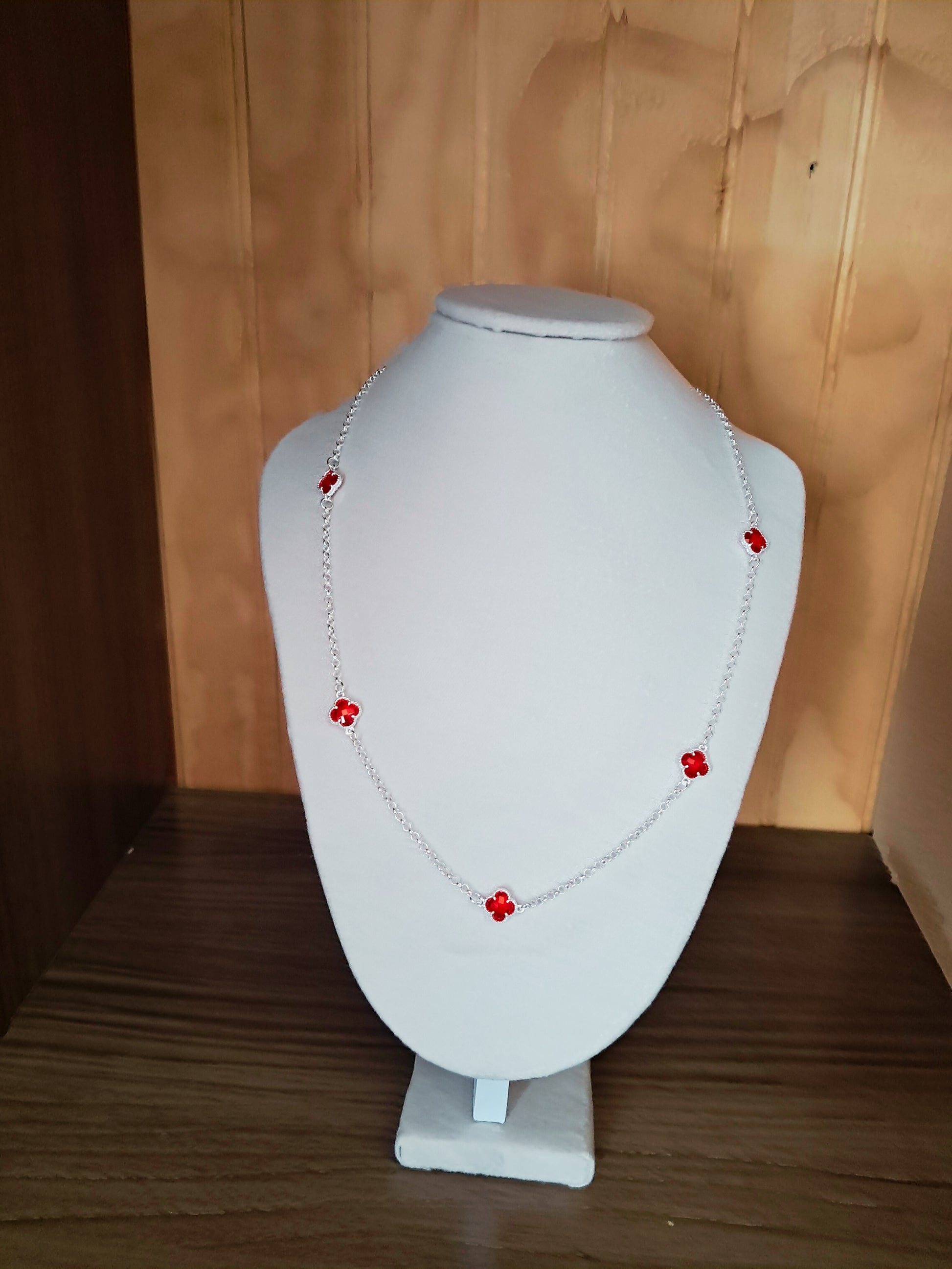 Diseño moderno en plata 925, con detalles de tréboles esmaltados en rojo intenso, representando energía, amor y protección. Una pieza perfecta para quienes buscan destacar con estilo y elegancia.