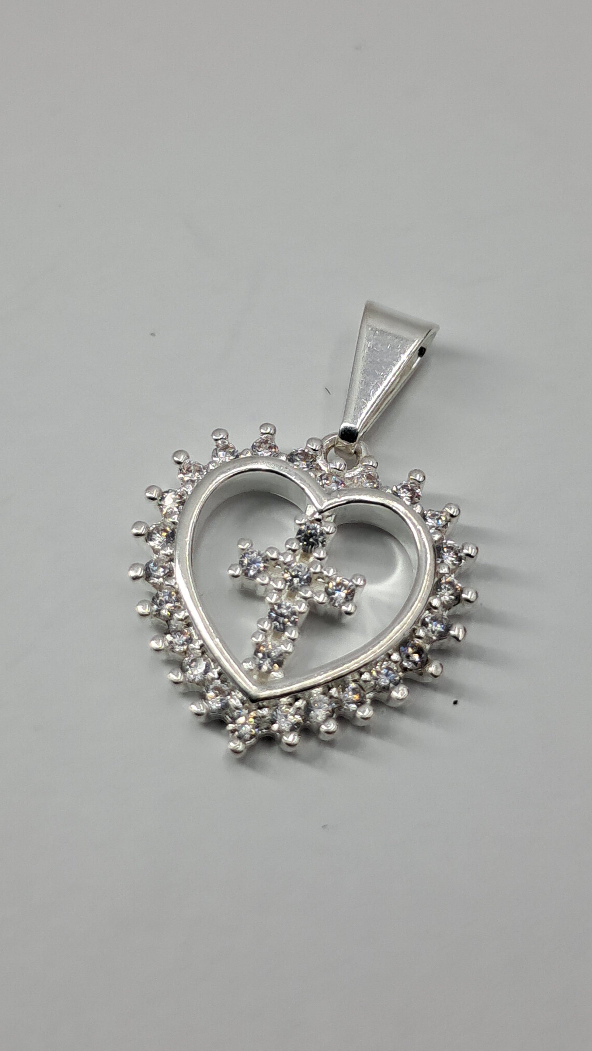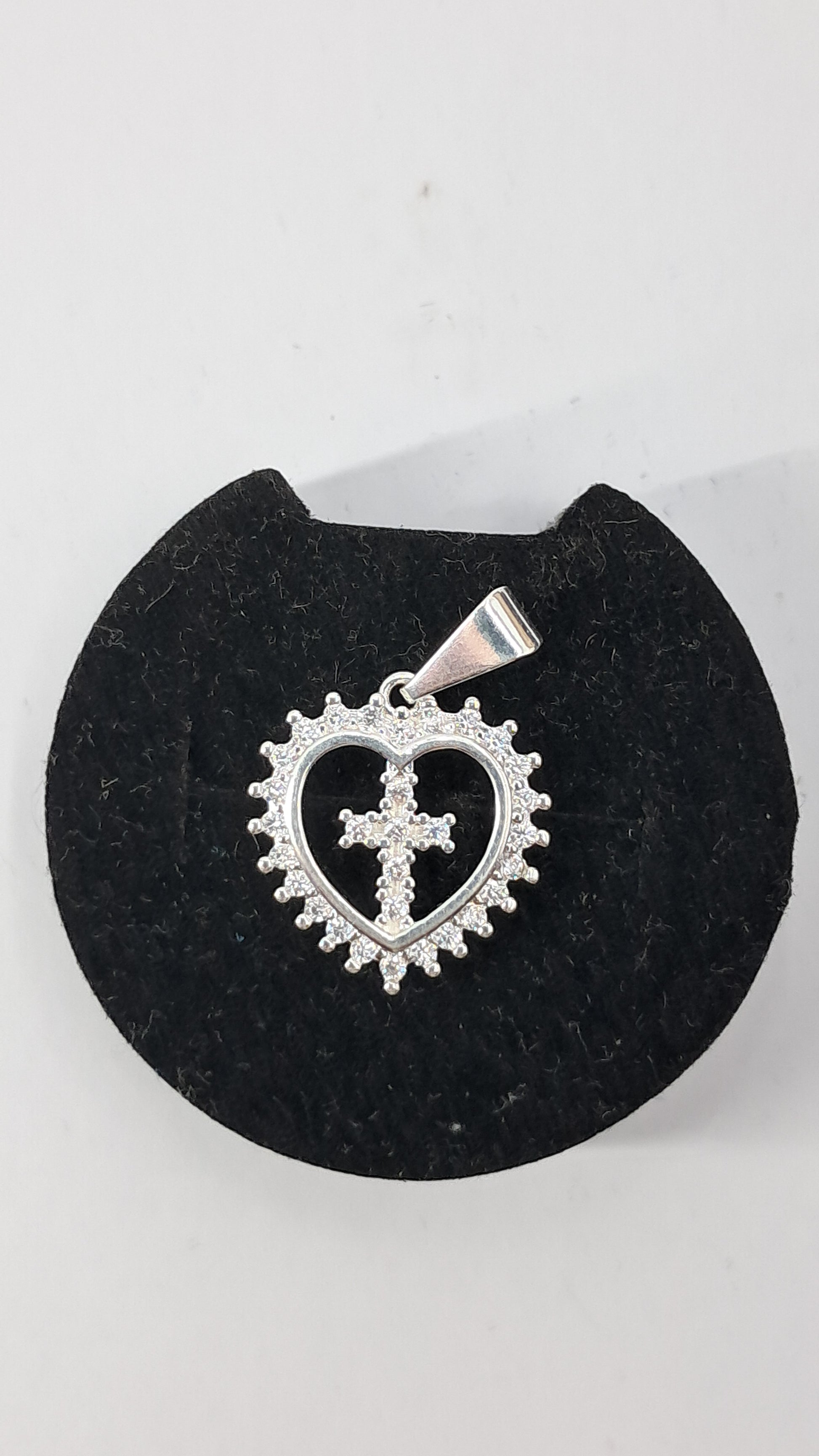 Dije Corazón con Cruz Brillante – Plata 925 (20 mm)