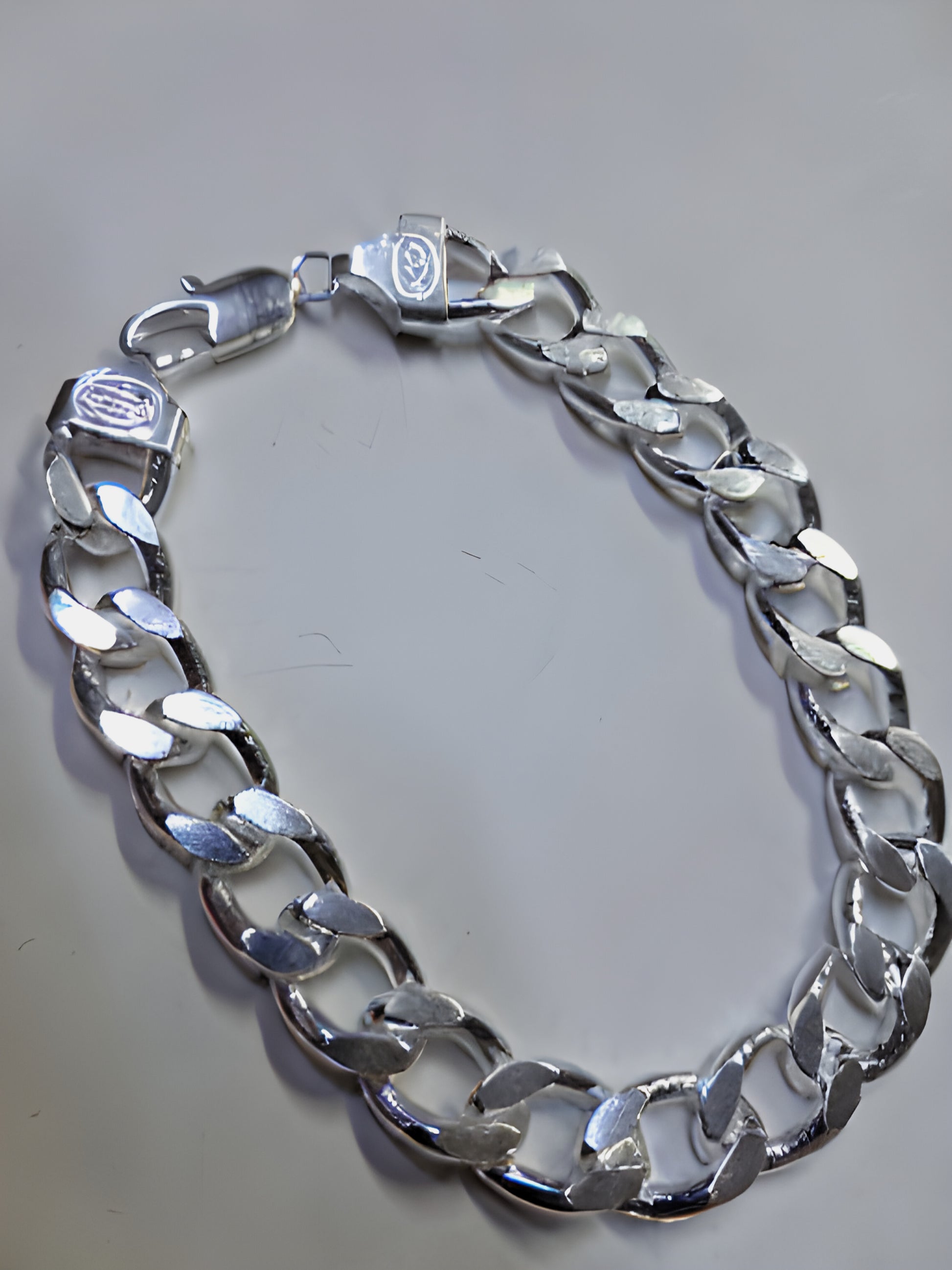 Esta pulsera está fabricada en auténtica plata 925, reconocida por su brillo y durabilidad. Su diseño de eslabones cubanos transmite fuerza y estilo, convirtiéndola en un accesorio imprescindible para el hombre moderno que busca un lujo accesible.