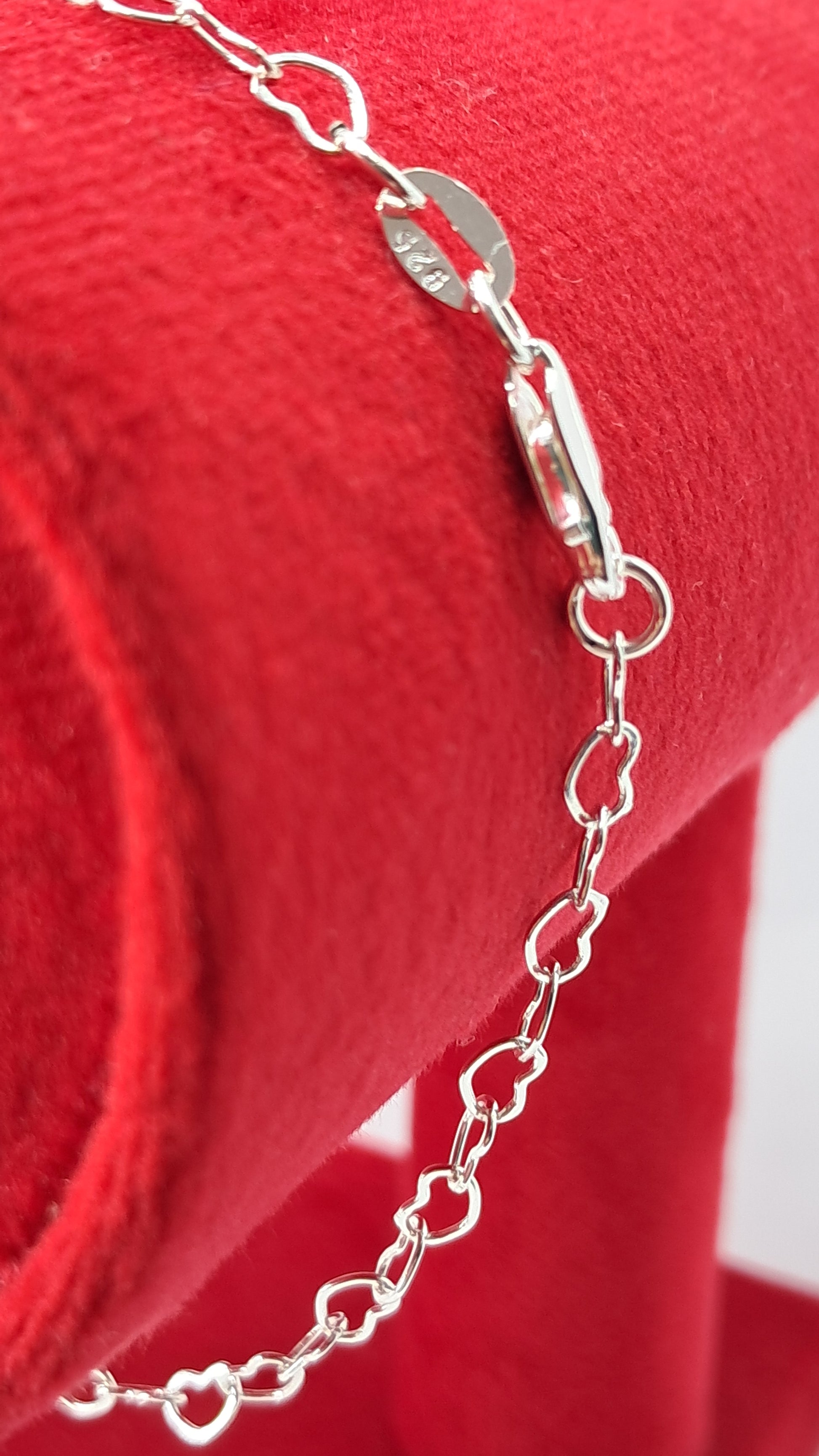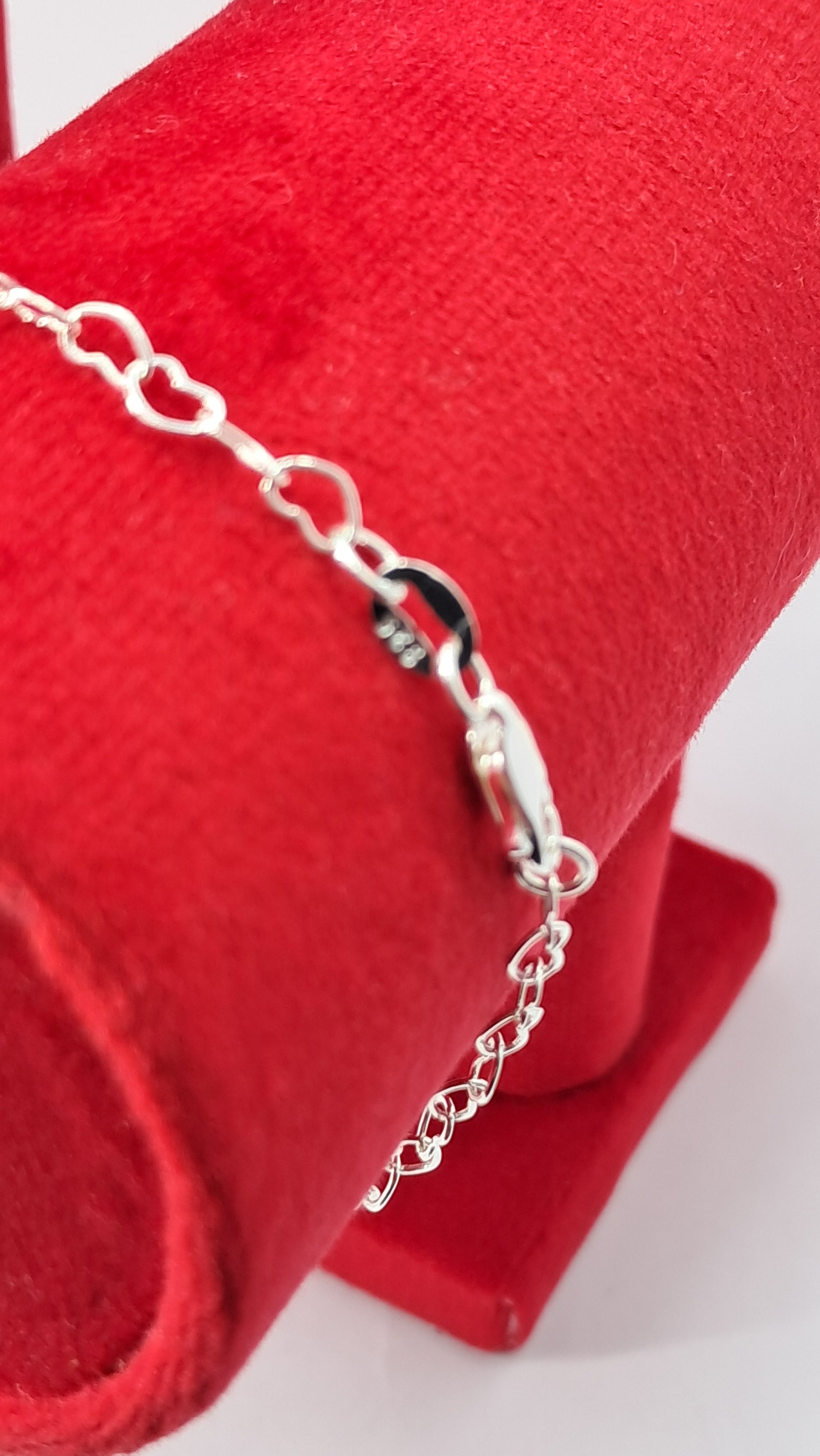 Amor infinito en cada eslabón. Esta romántica pulsera presenta delicados corazones abiertos de plata 925 que se entrelazan en una danza eterna. Cada corazón captura la luz creando destellos que acompañan tus movimientos con gracia absoluta.