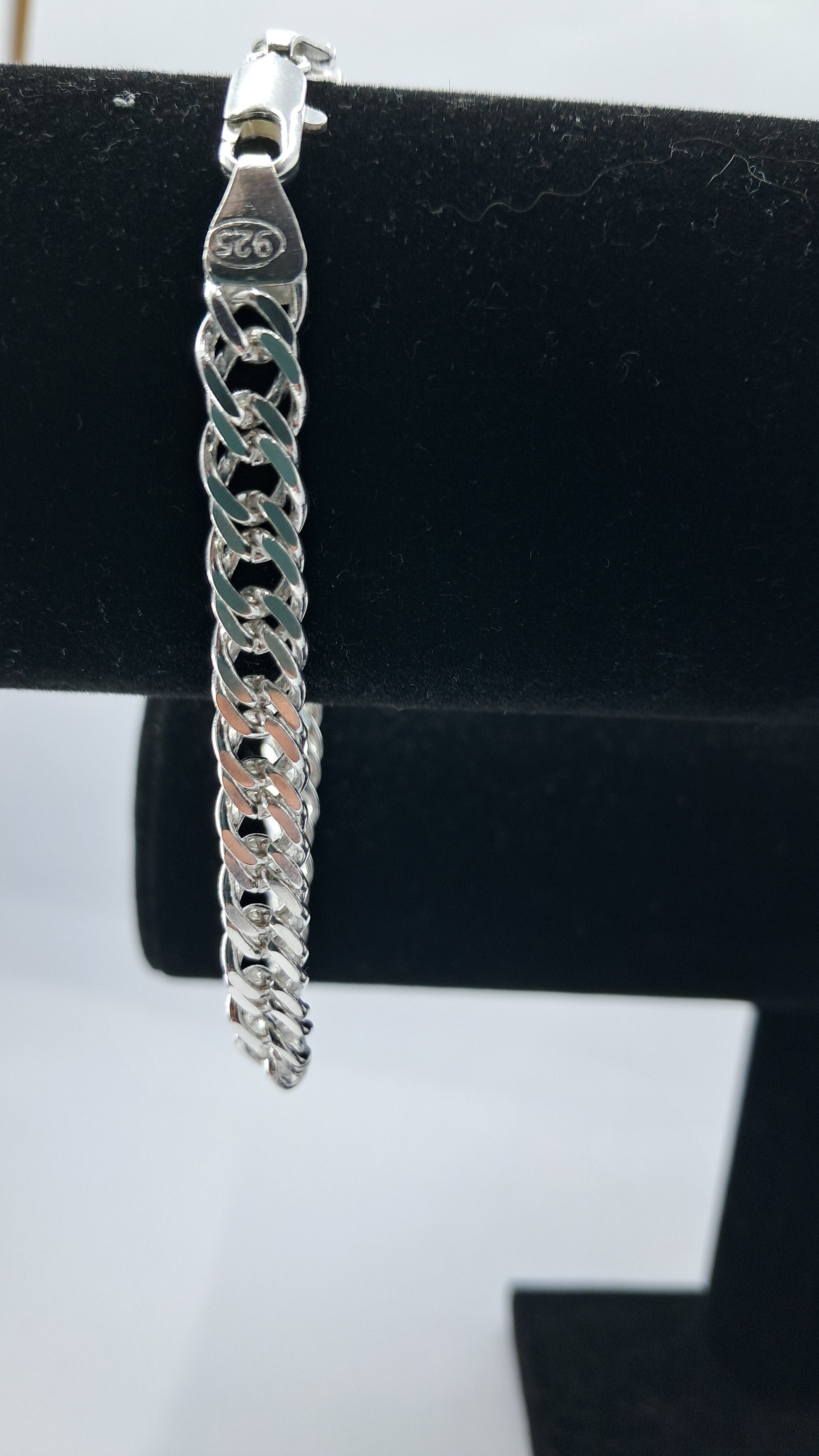 La cadena que define tu legado. Esta imponente pulsera cubana en plata 925 maciza es la pieza statement que separa a los hombres de éxito del resto. Cada eslabón doble está pulido a la perfección para crear un efecto hipnótico de luz y poder.