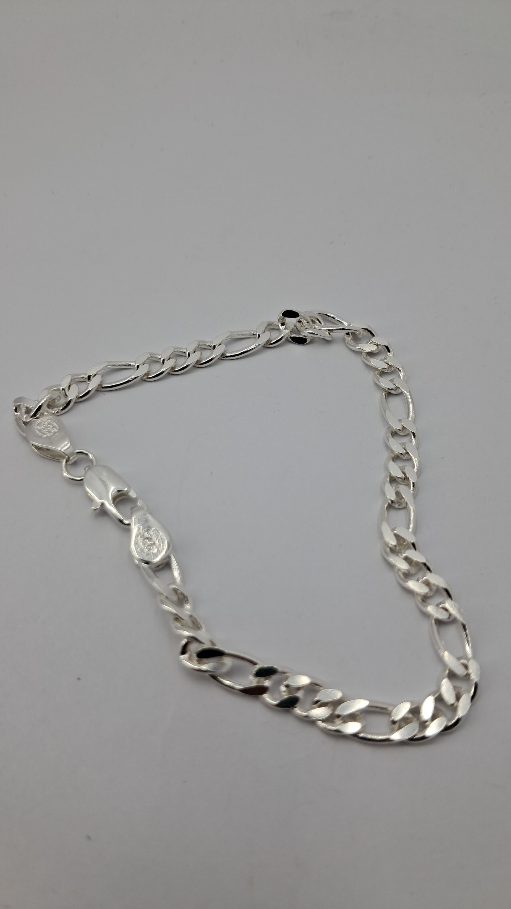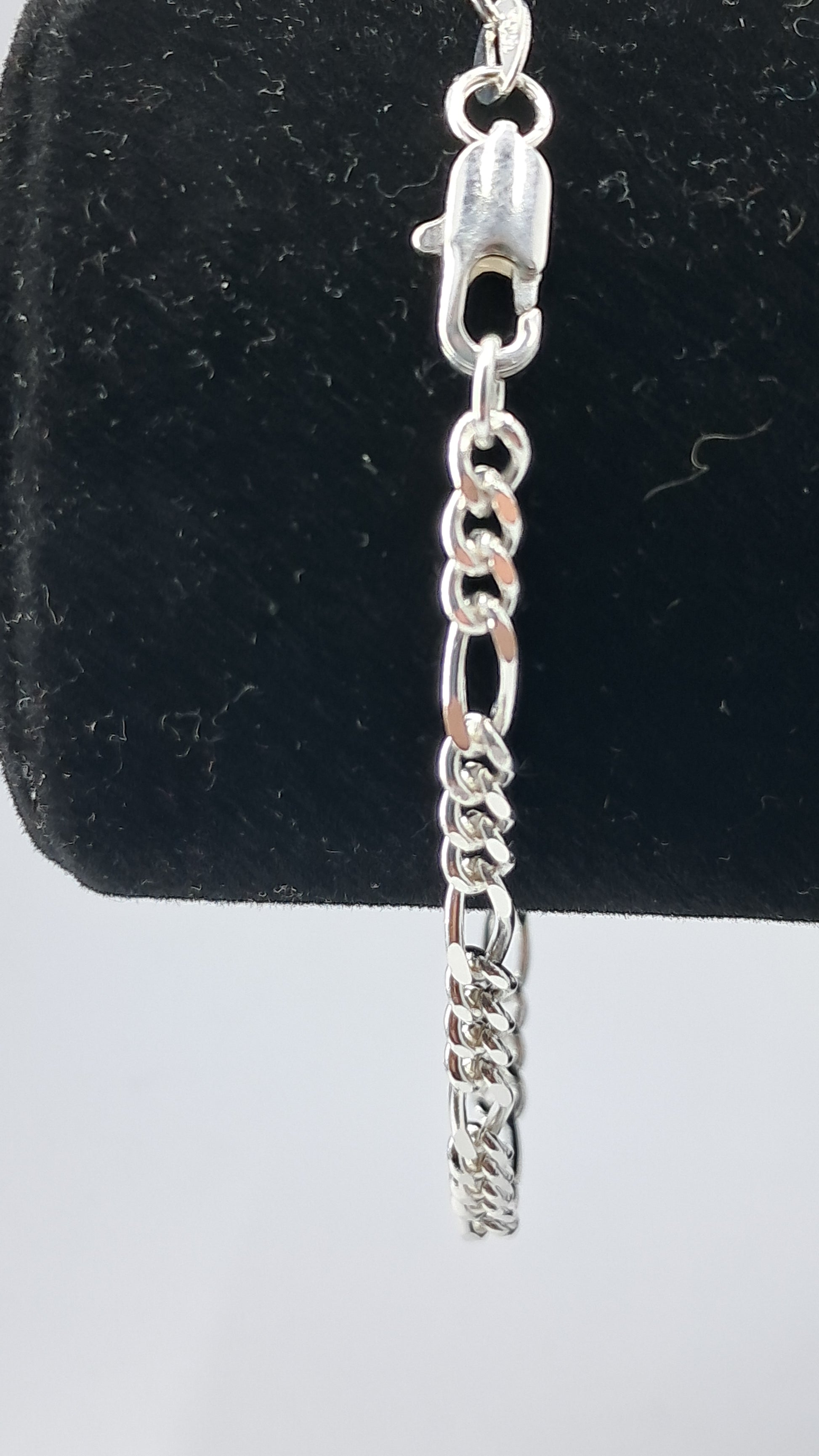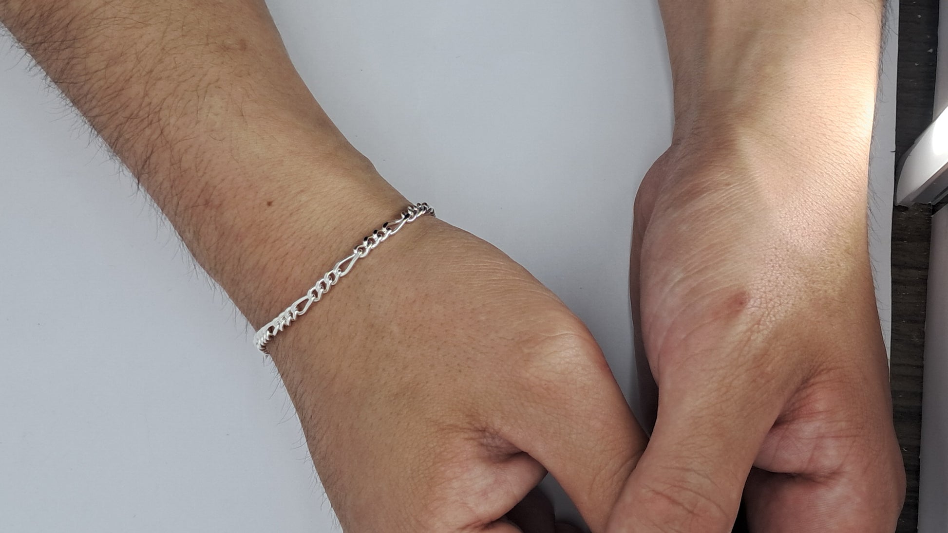 ¿Por qué será tu pulsera de confianza? 💎 Plata 925 genuina con sello de autenticidad - inversión que vale cada peso ⚡ Diseño Figaro 3:1 - tres eslabones cortos, uno largo, ritmo visual único 🔒 Cierre de seguridad reforzado que resiste tu ritmo de vida intenso