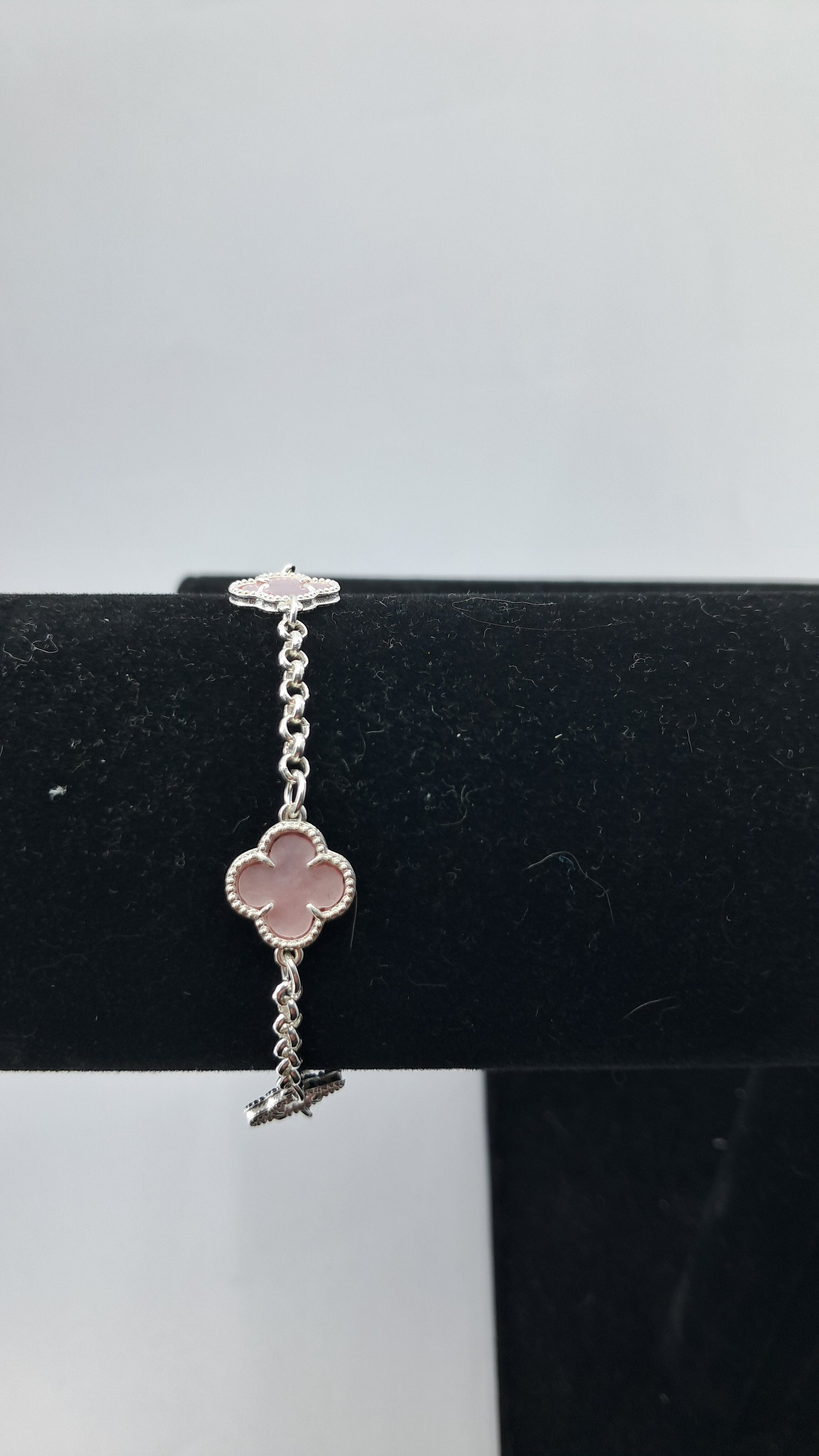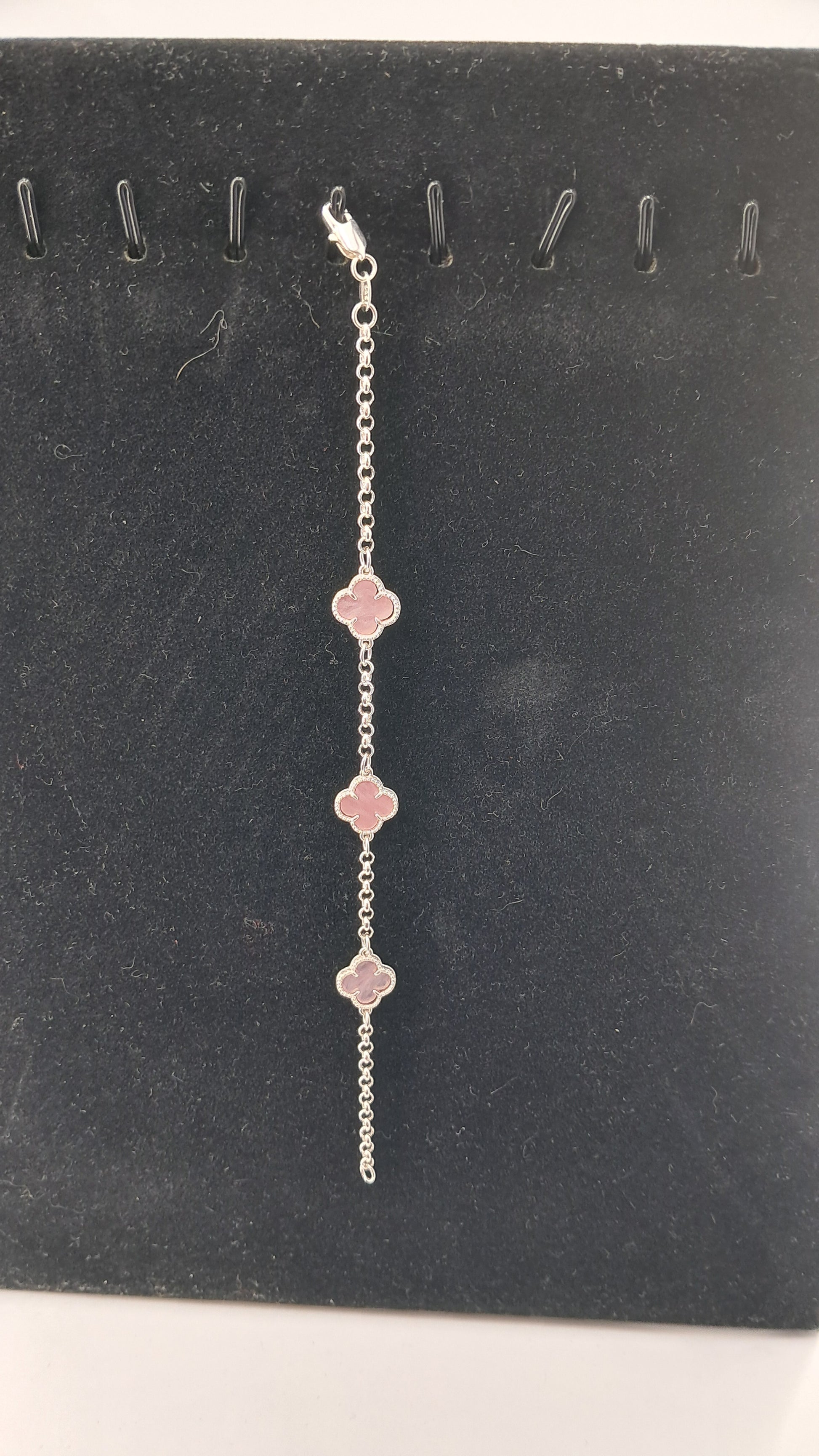 Pulsera Plata 925 — Trébol Rosa Perlado