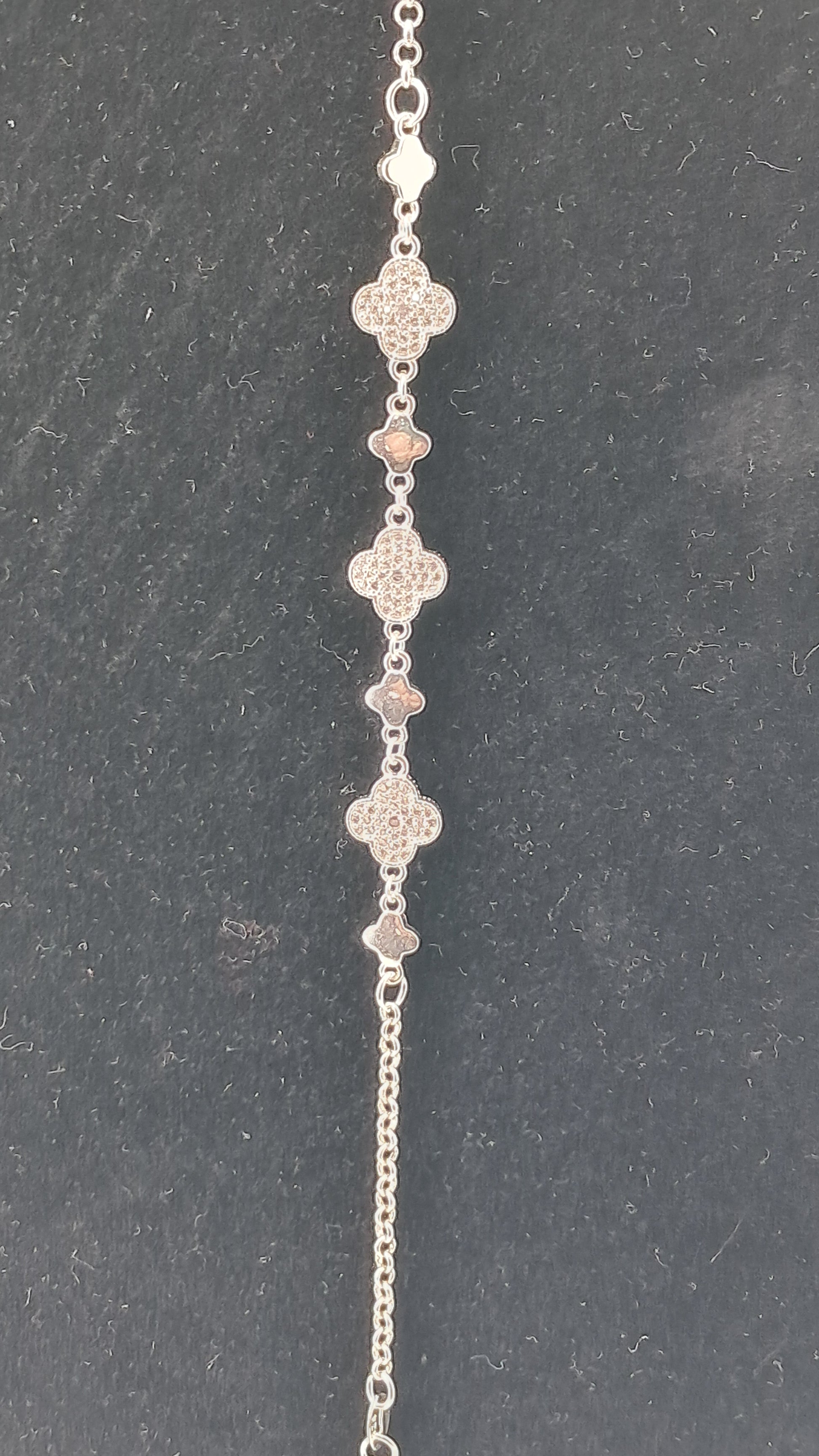 Pulsera Plata 925 — Tréboles Alternados con Circonitas